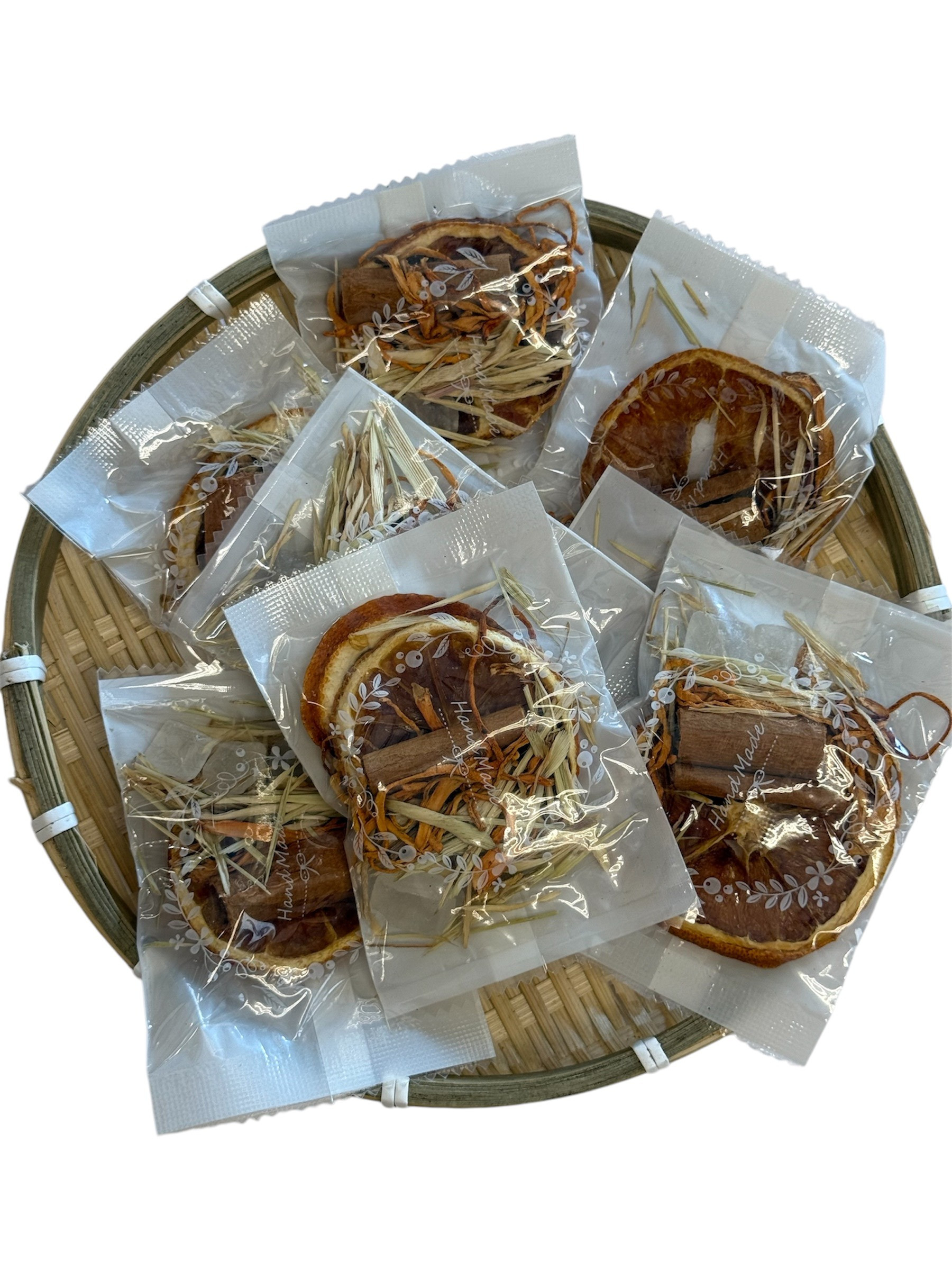 Natural Herbal Tea- Tra Cam Dong Trung(Tra Dong San) Ingredients: Dried Orange, Cinnamon, Dried Cordyceps Sinensis, Lemon Grass, Rock Sugar Usage:Put tea bag in 300 ml of boiling water. Steep for 5 minutes.