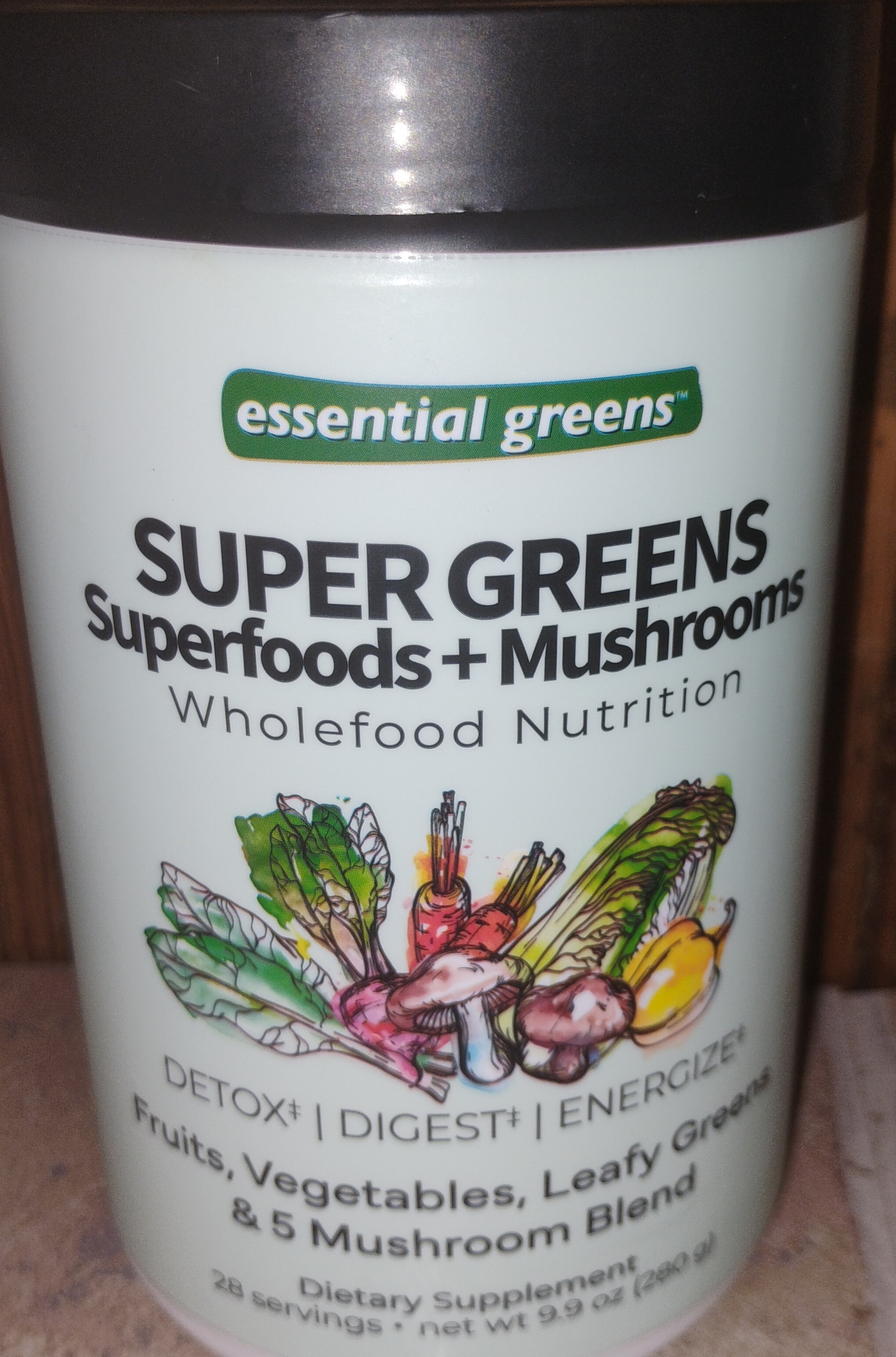 Elevate your wellness routine with our Essential Greens Super greens Superfoods + Mushrooms Detox/Digest/Energize 9.9 oz wholefood Nutrition. Packed with an enriching blend of fruits, vegetables, leafy greens, and a powerful 5 Mushroom Blend, this dietary supplement supports your detox, digestion, and energy needs. Enjoy 28 servings of comprehensive nutrition by simply mixing 1 scoop with 8-10 ounces of cold water or your favorite beverage and stirring or shaking well. At Water Tree Galveston, we prioritize fresh, alkaline water and wholesome products to support a healthier, more energized you. Embrace holistic well-being with the convenience of our Essential Greens Super greens Superfoods + Mushrooms.