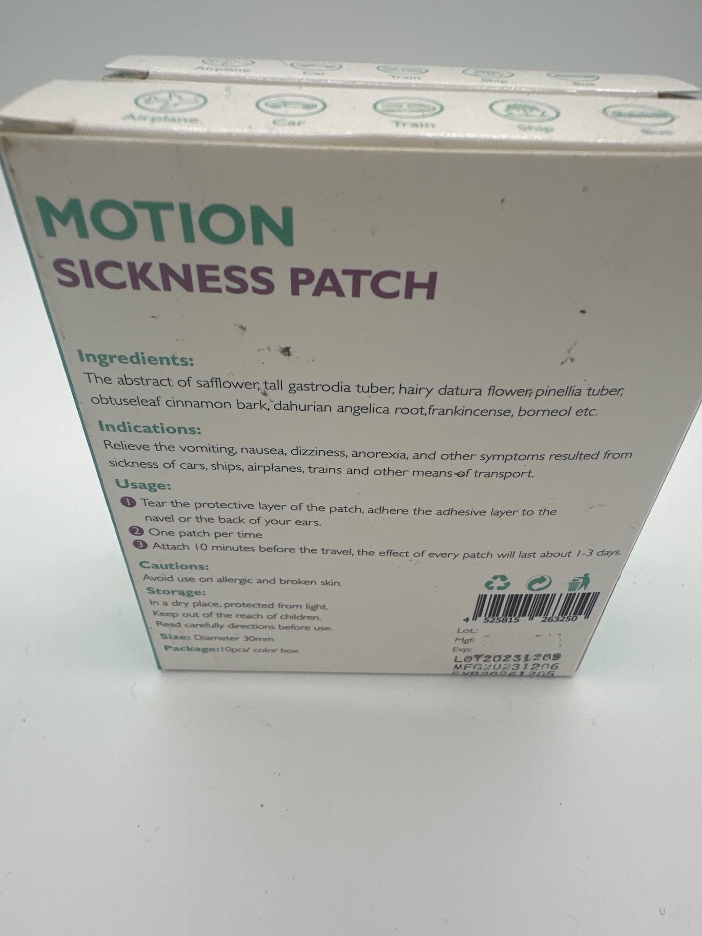 Relieves the vomiting, nausea, dizziness, anorexia, and other symptoms resulted from sickness of cars, ships, airplanes, trains, and other means of transport