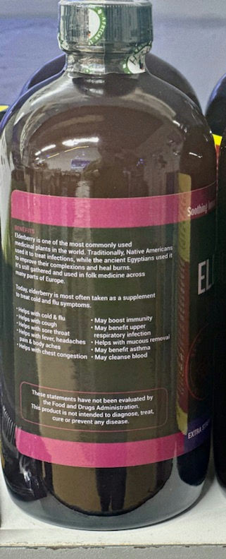 Boost your health and energy with this Elderberry Wellness Detox. Detox is a great way to strengthen your immune system, remove harmful toxins from your system, and raise your energy level. Elderberry berries and flowers are packed with antioxidants and vitamins that fight free radicals that damage your cells. They have anti-inflammatory properties that help to reduce pain and inflammation. They also help reduce stress and protect your cardiovascular system. Some experts believe that elderberry can help prevent and ease cold and flu symptoms. Get all the benefits of this Elderberry Wellness Detox today! Made in the USA. H-097Ingredients: Filtered Water, Organic Black Elderberries, Organic Echinacea Root, Organic Red Clover Blossoms, Organic Feverfew, Organic Mullein Leaf, Organi Stevia, Organic Astralagus Root, Organic Goldenseal Root, Organic White Willow Bark, Wild Harvested Anamu, Organic Lungwort, Organic Apple Cider Vinegar.Directions: Adults - 3 teaspoons twice a day.