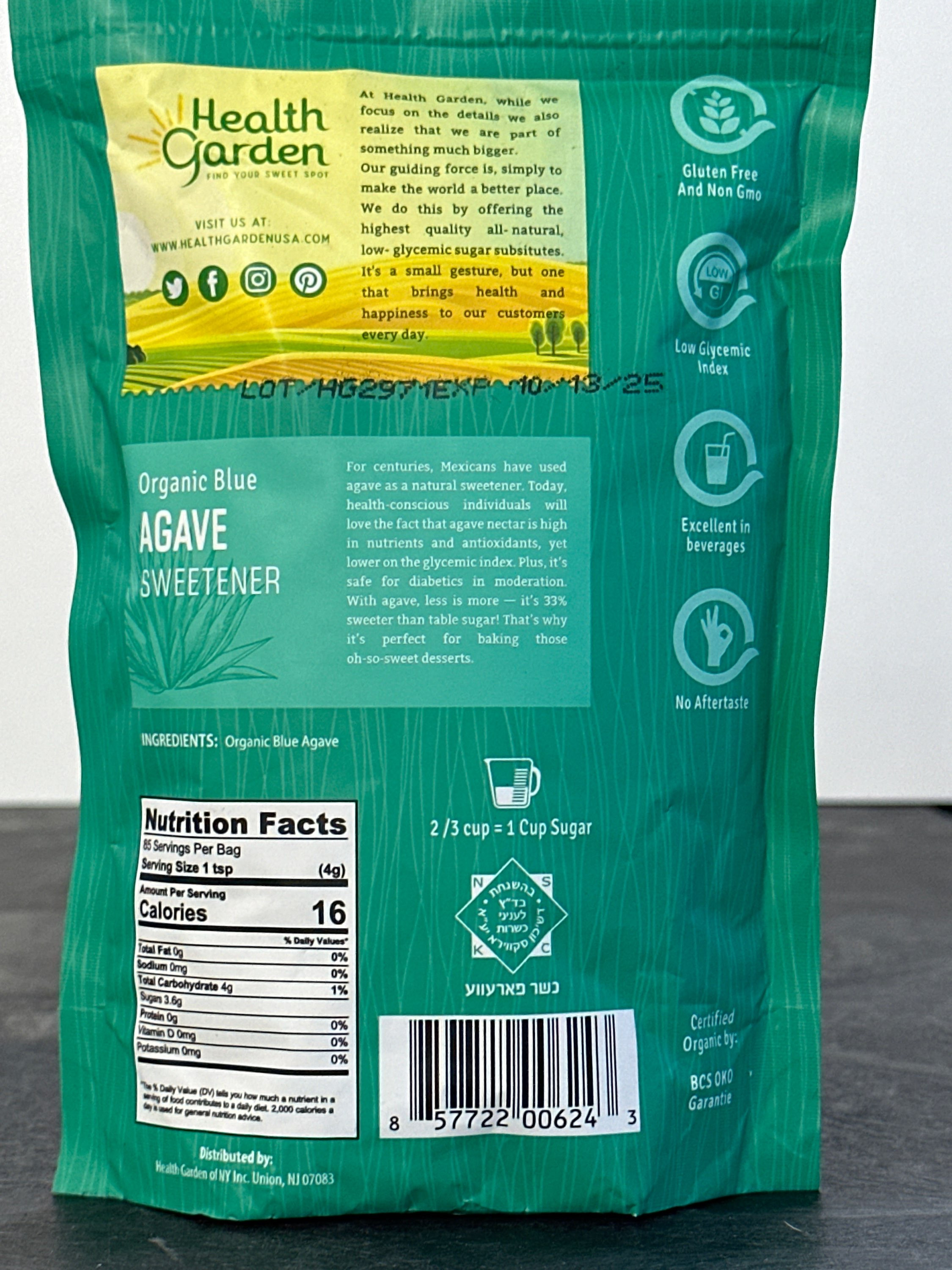 Experience the pure essence of Health Garden Organic Blue Agave Sweetener, a natural, organic sweetener derived from the Blue Agave plant, known for its mild sweetness and low glycemic index. This gluten-free, kosher sweetener is free from harmful additives and genetically modified ingredients, ensuring you get only the best for your health. Rich in nutrients and antioxidants, it perfectly aligns with Water Tree Galveston's commitment to providing fresh, high-quality products. Enhance your beverages and recipes with a touch of natural goodness that supports a balanced lifestyle. Enjoy a sweetener that not only tastes great but also nurtures your well-being.