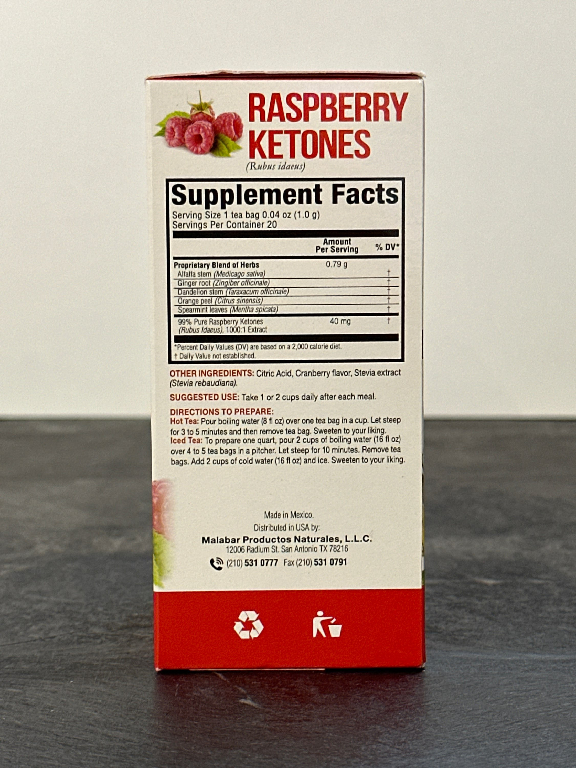 Discover the benefits of Greenside Raspberry Keytones at Water Tree Galveston, your trusted source for fresh alkaline water. This herbal tea is formulated to potentially aid in weight management, acting as a supplement that may help with fat burning, especially targeting belly fat, and promoting overall body fat reduction. Sweetened naturally with stevia, it's a delightful way to support your health goals. Made in Mexico with high-quality ingredients, this tea is a perfect addition to your wellness routine. Enjoy a refreshing and supportive beverage designed for your well-being.