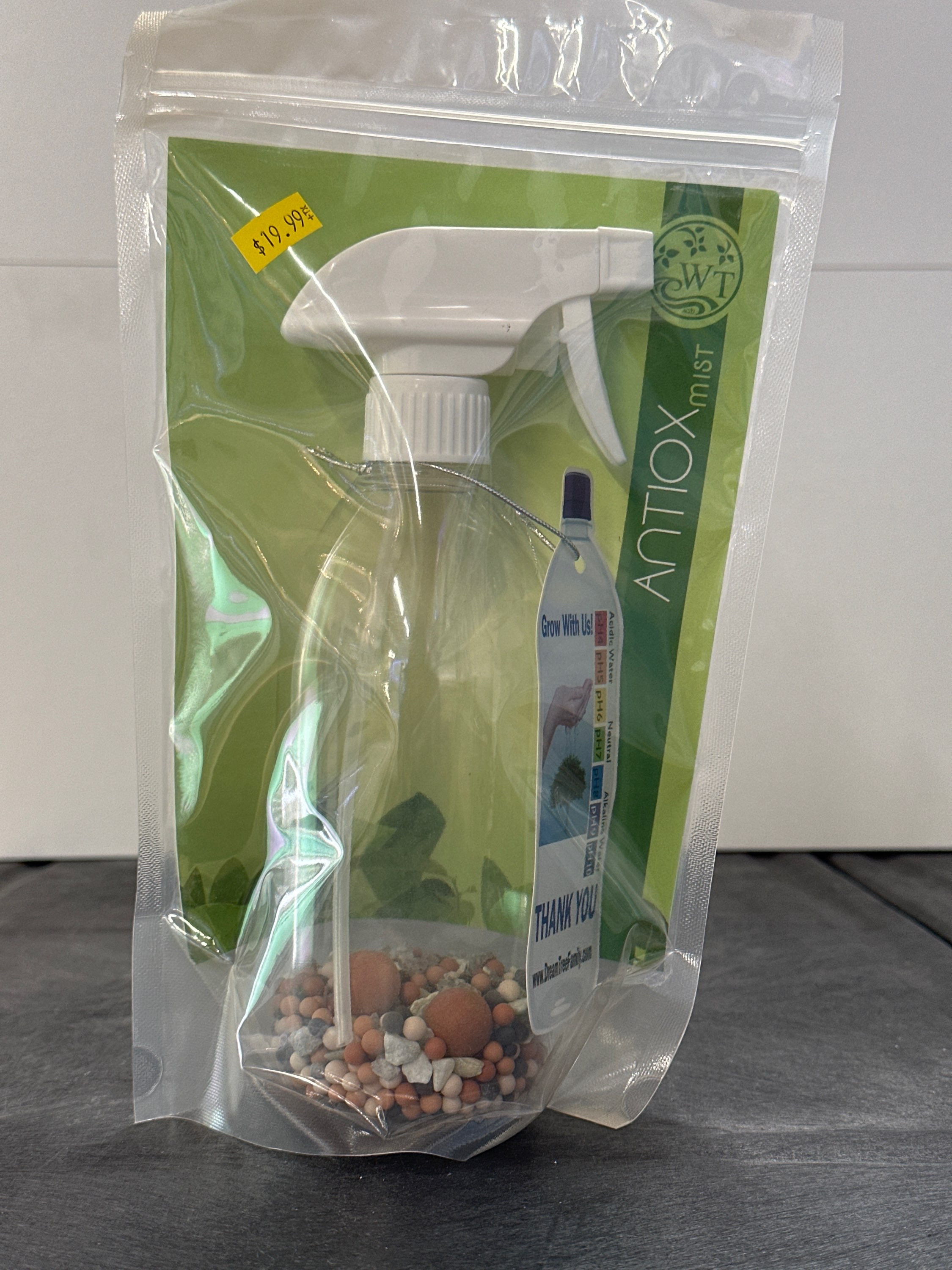 We have taken our amazing antioxidant, alkaline ceramic, mineral composition, and supercharged it with crystals that increase the oxidation fighting power to the extreme. You will see amazing results!DT Premium Antioxidant Spray comes in 3 sizes, from our most portable 1-ounce bottle to our super-sized 16-ounce bottle. Use it to refresh skin, enhance hair, and ease minor cuts, bites, and irritation.What Are the Benefits?Water Tree is committed to offering you a healthier way of life, so you can be assured that our range of DT antioxidant sprays contain no parabens, sulfates, synthetic fragrances or dyes, petrochemicals, or phthalates — just pure, mineral, antioxidant, alkaline goodness!Our product is naturally antibacterial and will kill up to 99% of bacteria, which allows the DT antioxidant spray to be used for so much more than skin care. It can aid in the healing of cuts and burns. It reduces bacteria, itching, and irritation from insect bites and stings. And a few sprays after meals or drinking acidic beverages (like coffee or soda) promotes fresher breath and rebalances your mouth’s pH levels!ORDER NOW