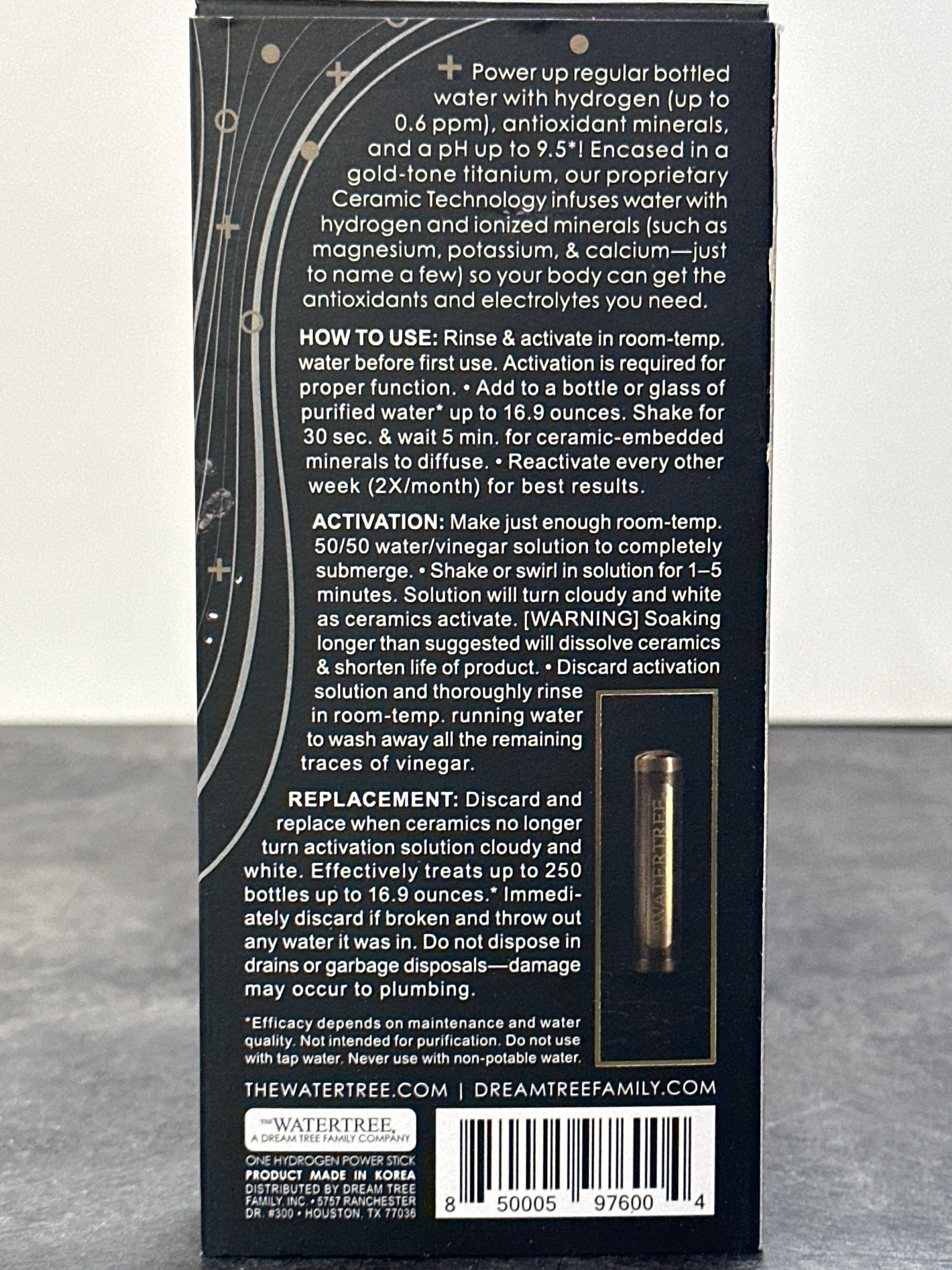 A convenient and portable way to produce healthy water! Our secret is our patented process that utilizes hydrogen, activated ceramics, and a state-of-the-art system that naturally removes the oxygen-free radicals and re-energizes your water. The Power Stix is also antibacterial, so it can be used in a number of applications. Call us for current price.What Are the Benefits? Will treat up to 250 12-20 oz. bottles of water Similar benefits as the Water Tree Power Pitcher Portable โ put them into your travel or workout bag Convenient โ add to any bottled water Simple to use โ drop them in and shake Work in bottled or filtered water Antibacterial properties add to the benefits